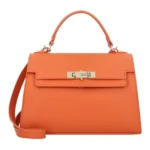 لوگوی V فلزی به عنوان امضای برند در طراحی کیفها